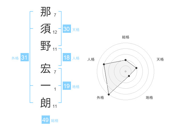 那須野 宏一朗さんを姓名の画数から五運を鑑定