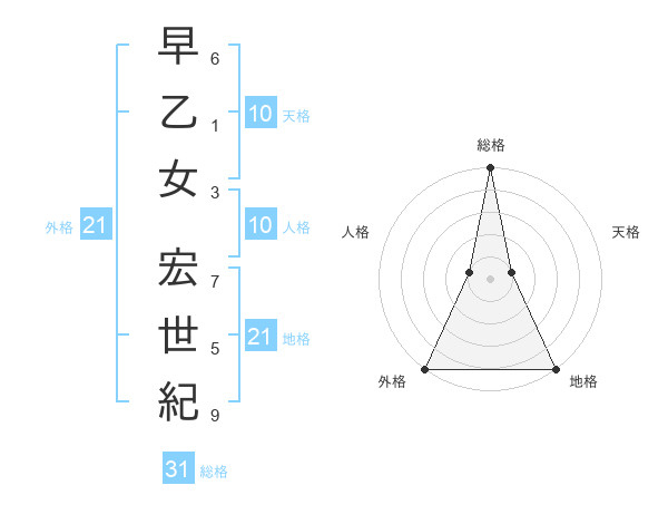 早乙女 宏世紀さんを姓名の画数から五運を鑑定
