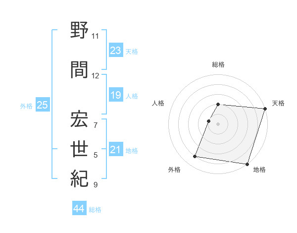 野間 宏世紀さんを姓名の画数から五運を鑑定