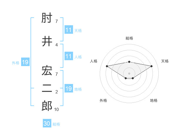 肘井 宏二郎さんを姓名の画数から五運を鑑定