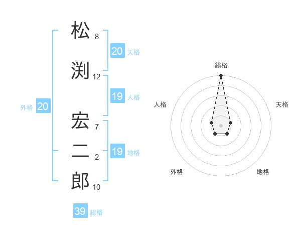 松渕 宏二郎さんを姓名の画数から五運を鑑定