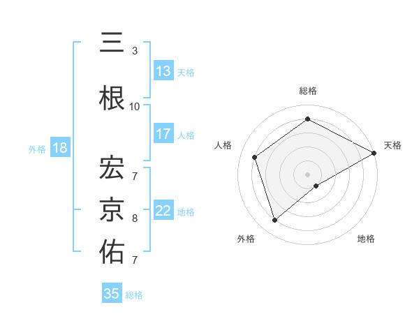 三根 宏京佑さんを姓名の画数から五運を鑑定