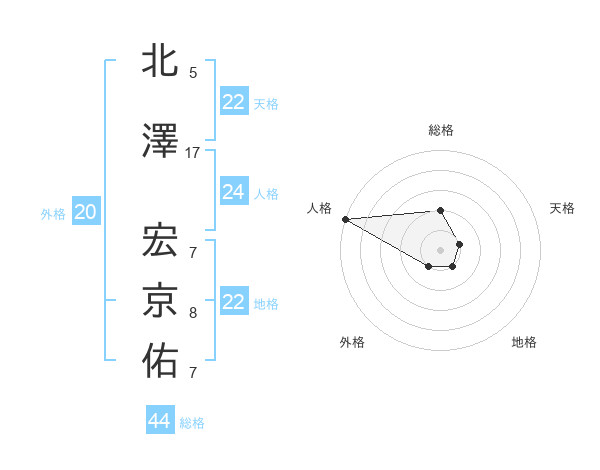 北澤 宏京佑さんを姓名の画数から五運を鑑定