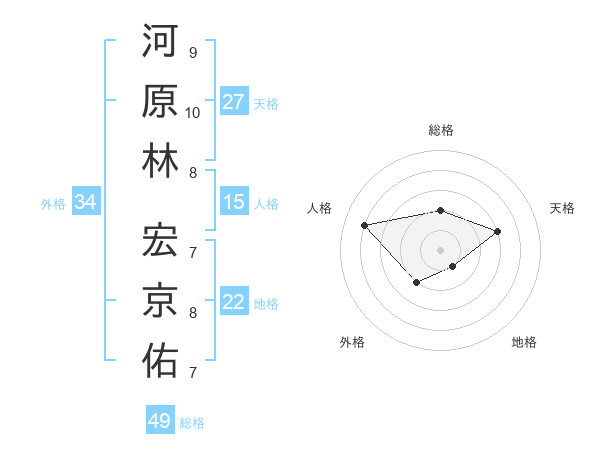 河原林 宏京佑さんを姓名の画数から五運を鑑定