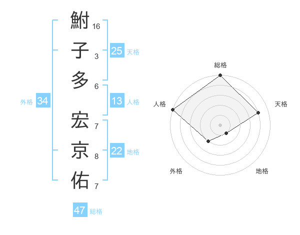 鮒子多 宏京佑さんの総格は47画の5点!