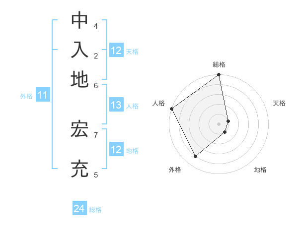 中入地 宏充さんを姓名の画数から五運を鑑定