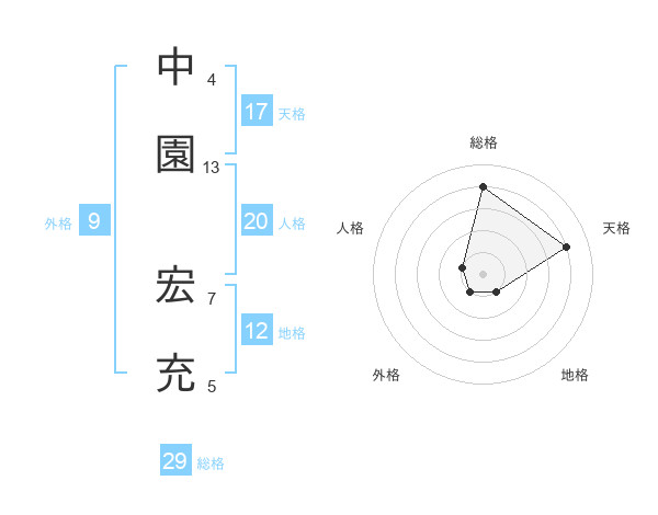 中園 宏充さんの総格は29画の4点!