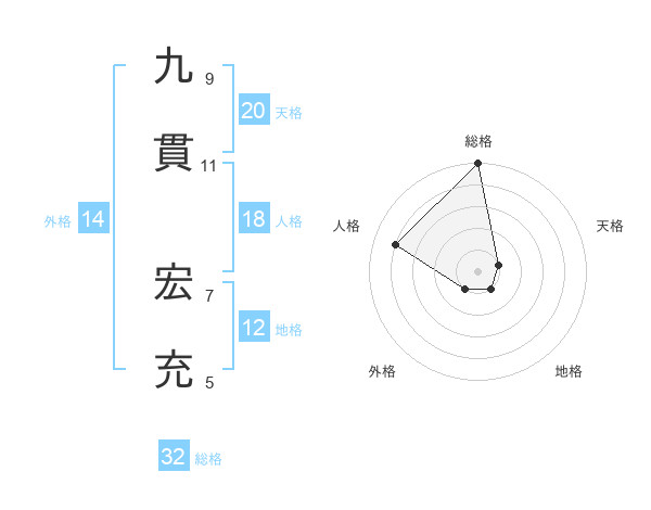 九貫 宏充さんの総格は32画の5点!