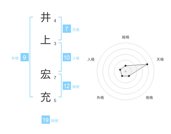 井上 宏充さんの総格は19画の1点!
