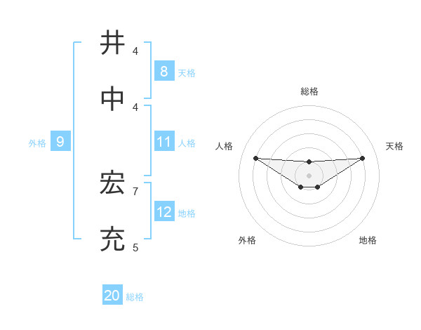 井中 宏充さんの総格は20画の1点!