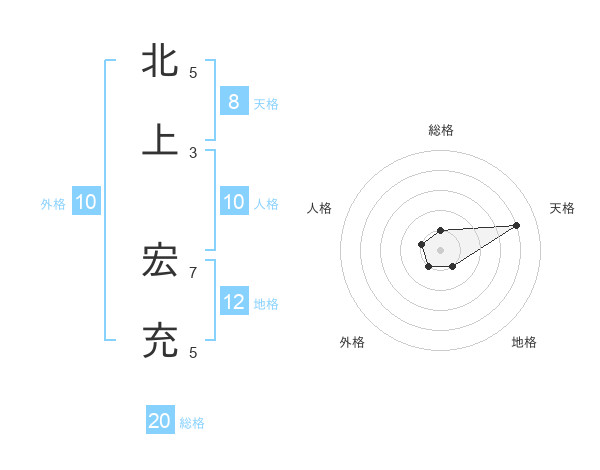 北上 宏充さんの総格は20画の1点!