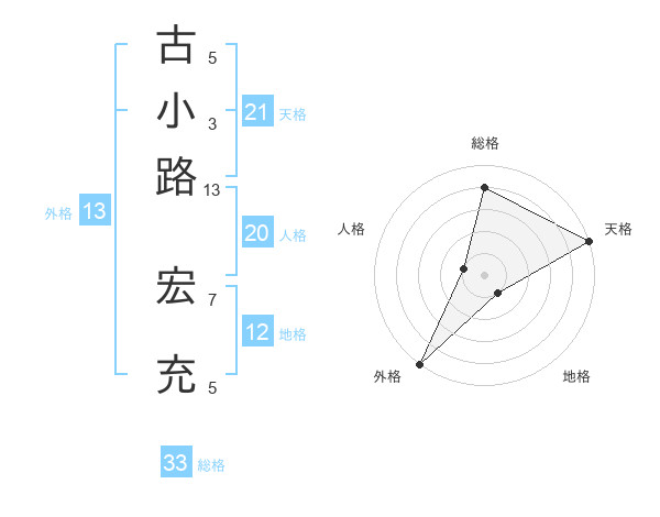 古小路 宏充さんを姓名の画数から五運を鑑定