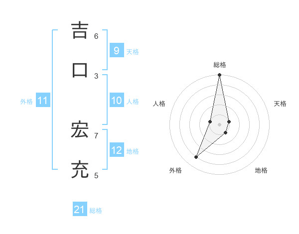 吉口 宏充さんの総格は21画の5点!