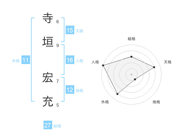 寺垣 宏充さんを姓名の画数から五運を鑑定