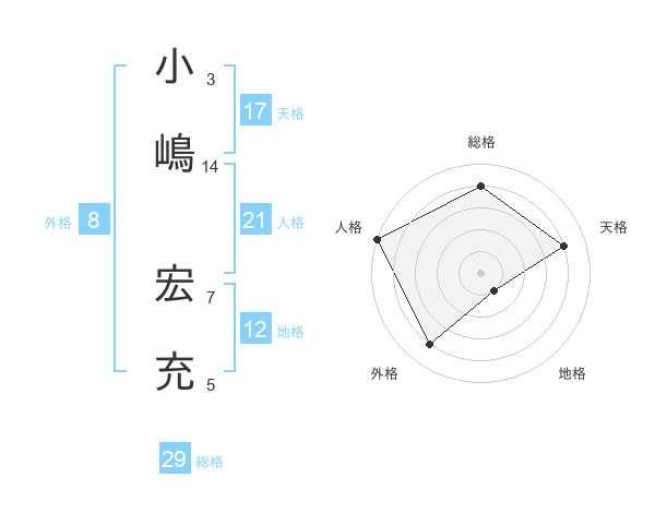 小嶋 宏充さんを姓名の画数から五運を鑑定