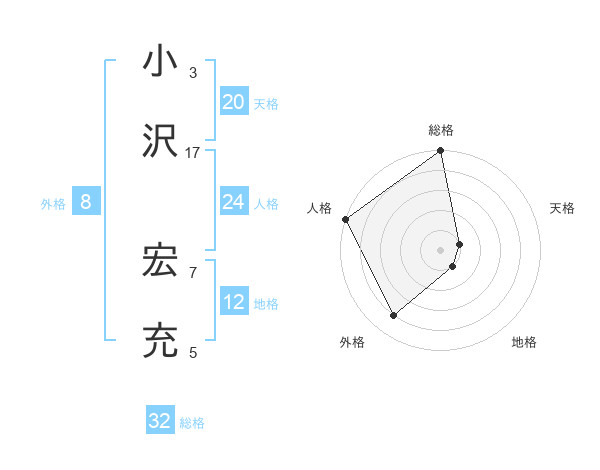小沢 宏充さんの総格は32画の5点!