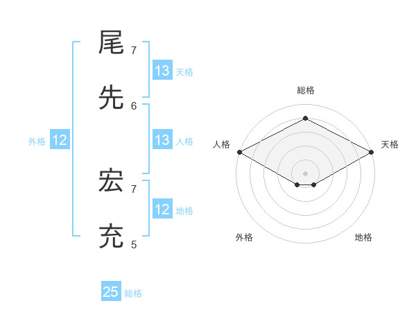 尾先 宏充さんの天格は13画の5点!