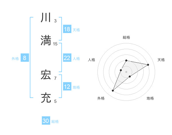 川満 宏充さんの総格は30画の2点!
