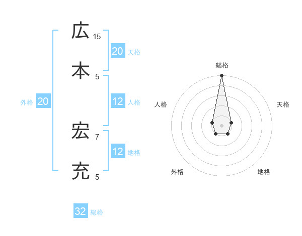 広本 宏充さんの総格は32画の5点!