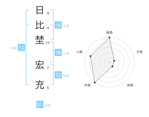 日比埜 宏充さんを姓名の画数から五運を鑑定