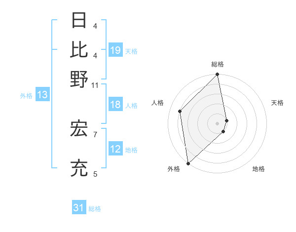 日比野 宏充さんの総格は31画の5点!