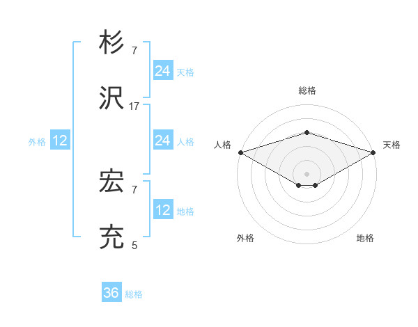 杉沢 宏充さんを姓名の画数から五運を鑑定