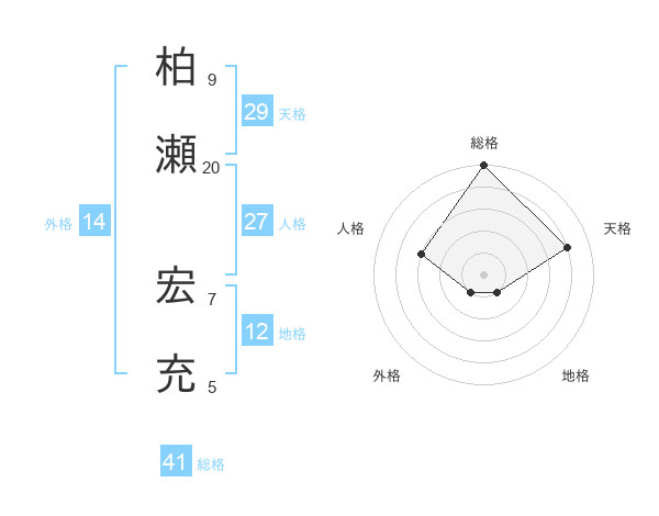 柏瀬 宏充さんを姓名の画数から五運を鑑定