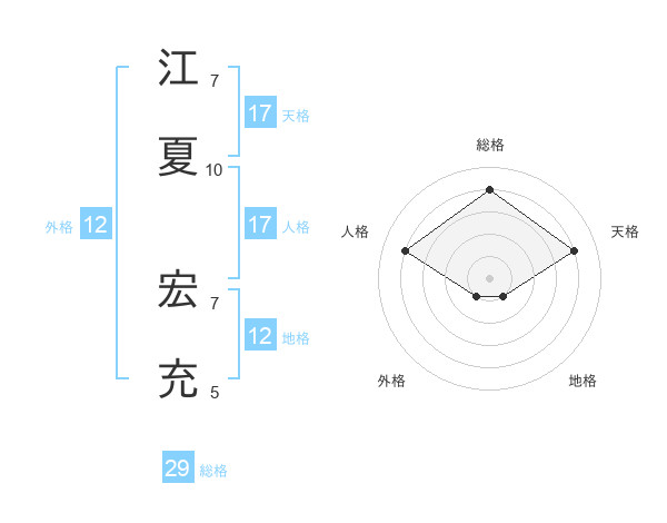 江夏 宏充さんを姓名の画数から五運を鑑定