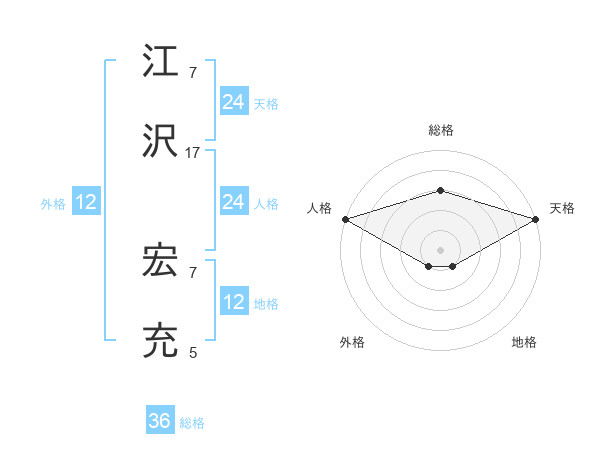 江沢 宏充さんの天格は24画の5点!