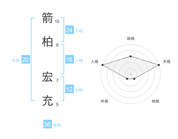 箭柏 宏充さんを姓名の画数から五運を鑑定