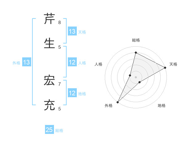 芹生 宏充さんの天格は13画の5点!