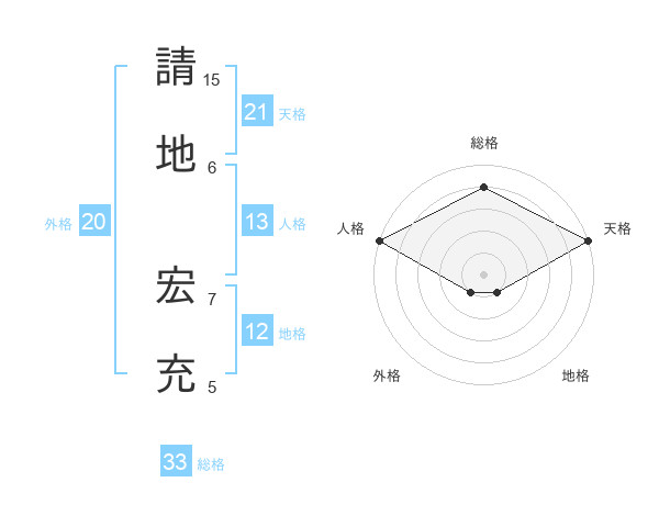 請地 宏充さんの天格は21画の5点!