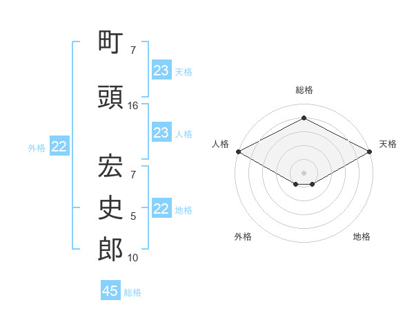 町頭 宏史郎さんの総格は45画の4点!