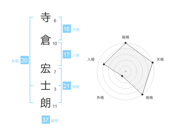 寺倉 宏士朗さんの総格は37画の5点!