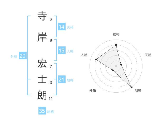 寺岸 宏士朗さんを姓名の画数から五運を鑑定
