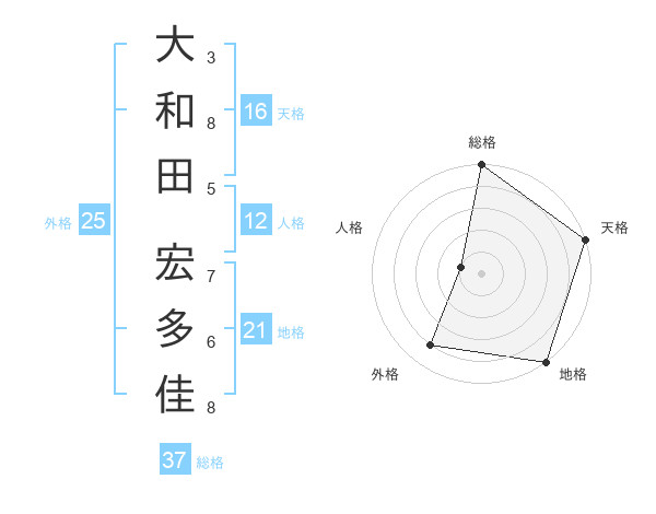 大和田 宏多佳さんの総格は37画の5点