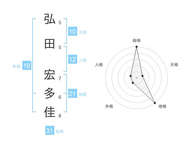 弘田 宏多佳さんを姓名の画数から五運を鑑定
