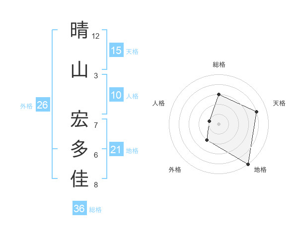 晴山 宏多佳さんの天格は15画の4点!
