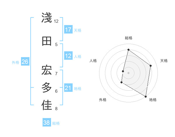 淺田 宏多佳さんの総格は38画の4点