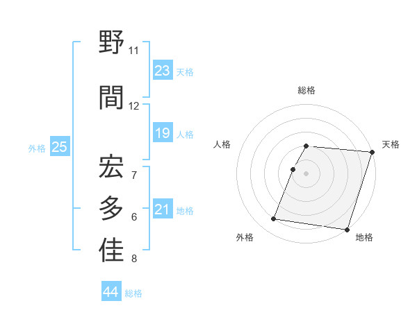 野間 宏多佳さんを姓名の画数から五運を鑑定