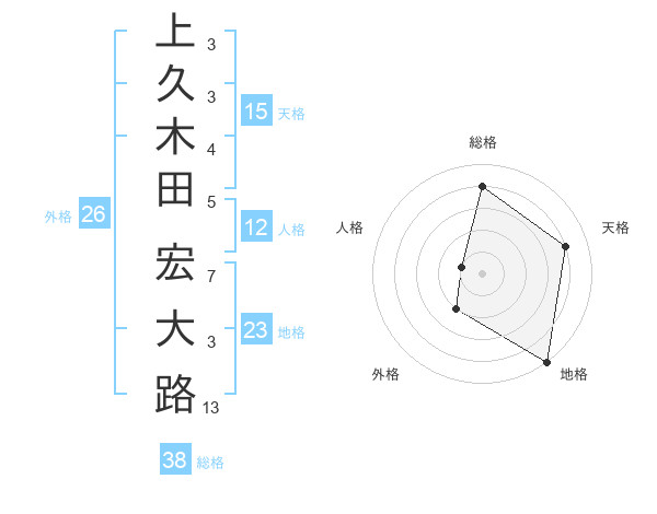 上久木田 宏大路さんを姓名の画数から五運を鑑定