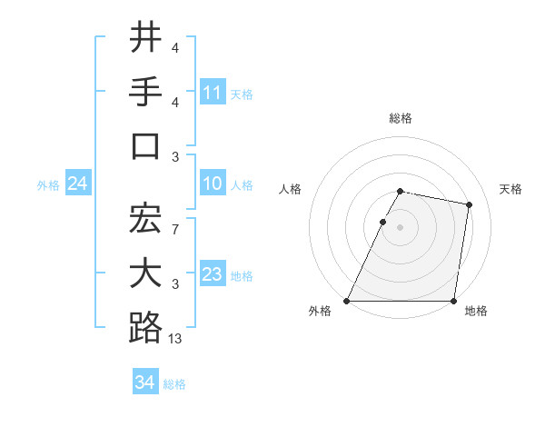 井手口 宏大路さんを姓名の画数から五運を鑑定