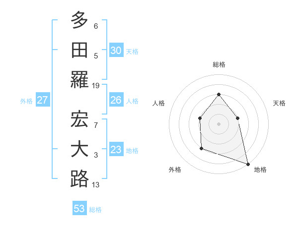 多田羅 宏大路さんの総格は53画の3点!