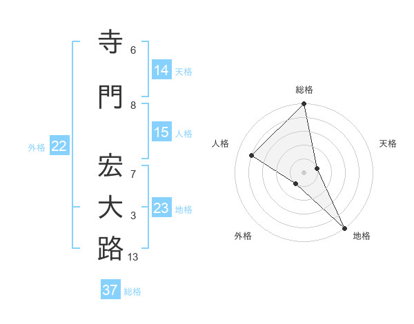 寺門 宏大路さんの総格は37画の5点!