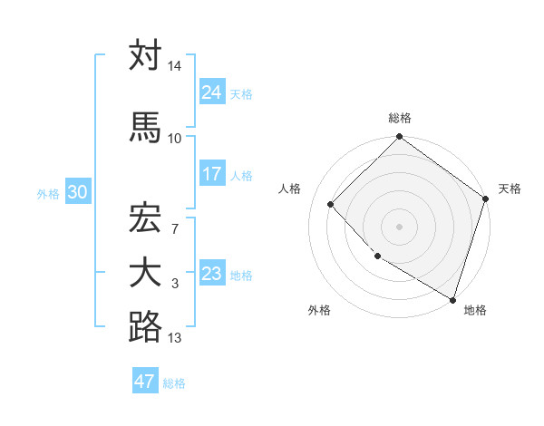 対馬 宏大路さんの総格は47画の5点!
