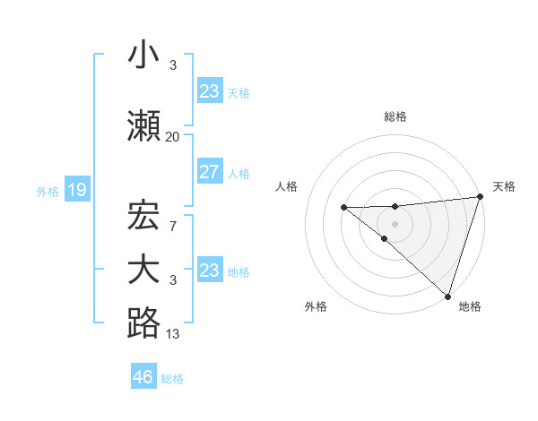 小瀬 宏大路さんの天格は23画の5点!