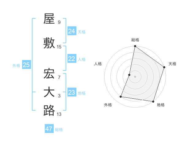 屋敷 宏大路さんを姓名の画数から五運を鑑定