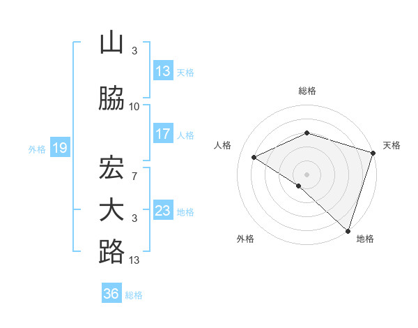 山脇 宏大路さんを姓名の画数から五運を鑑定