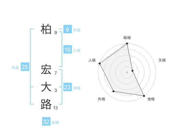 柏 宏大路さんを姓名の画数から五運を鑑定