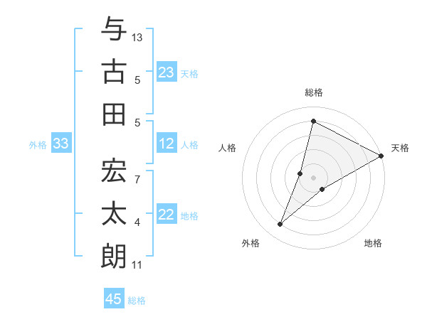 与古田 宏太朗さんを姓名の画数から五運を鑑定